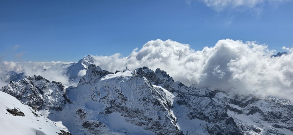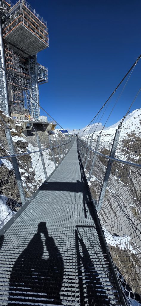 Oben angekommen erwartete uns eine atemberaubende Aussicht und ein echtes Highlight: der Titlis Cliff Walk, Europas höchstgelegene Hängebrücke auf 3’041 Metern Höhe. 150 Schritte über einem 500 Meter tiefen Abgrund, begleitet vom pfeifenden Wind und einem kräftigen Adrenalinschub. Ein Erlebnis, das wir so schnell nicht vergessen werden.