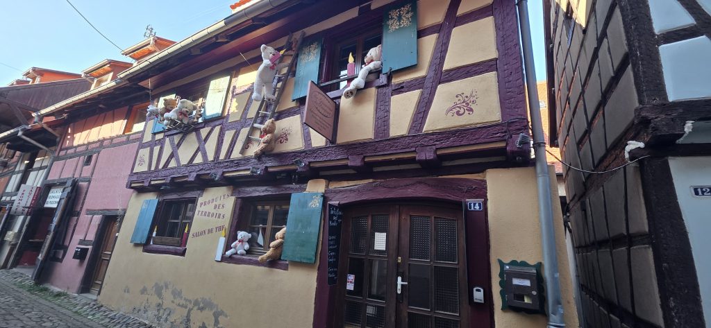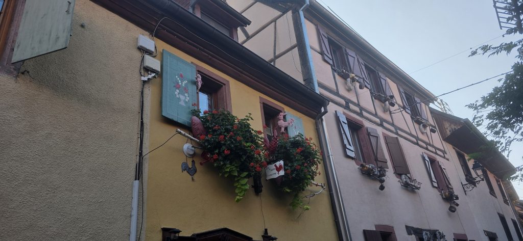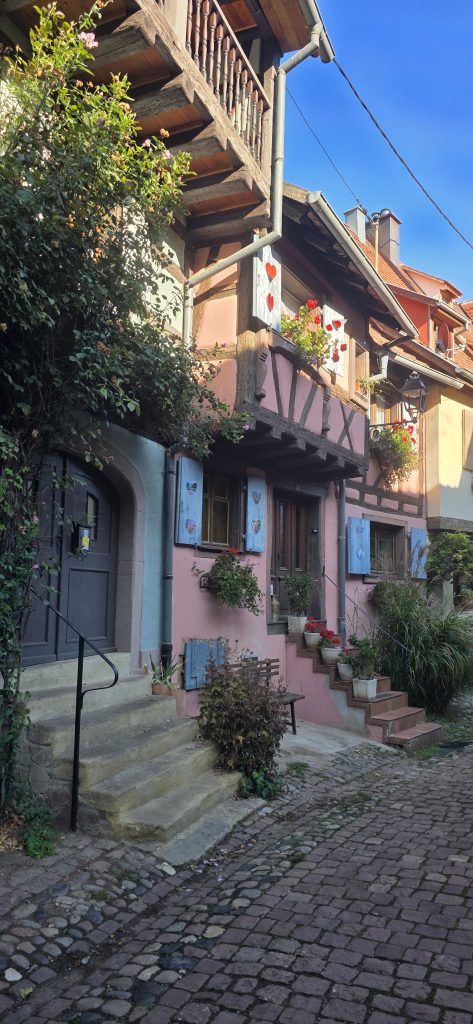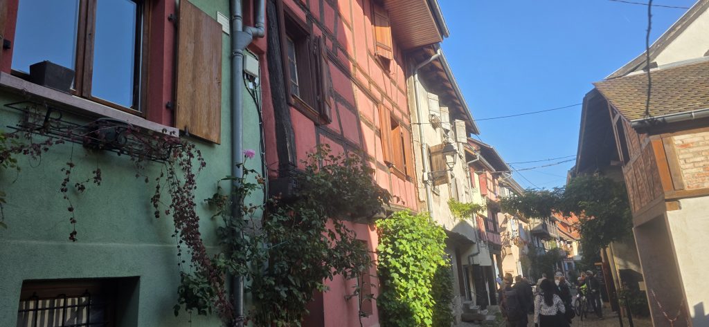 Kopfsteinpflaster, bunte Fachwerkhäuser, kunstvolle Schilder und ein kreisförmiger Ortskern. Eguisheim wirkt wie ein lebendiges Bilderbuch.