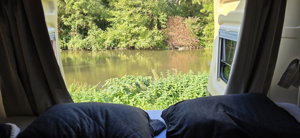 Kaum unterwegs, der nächste Schreck: Ein Blick auf die Buchung zeigt, dass wir den Campingplatz von Sonntag bis Dienstag gebucht hatten, geplant war aber Samstag bis Montag. Natürlich war der Platz voll. Aber wie durch ein kleines Wunder bekamen wir trotzdem einen Stellplatz, zwar ohne Strom, aber das war für uns kein Problem.