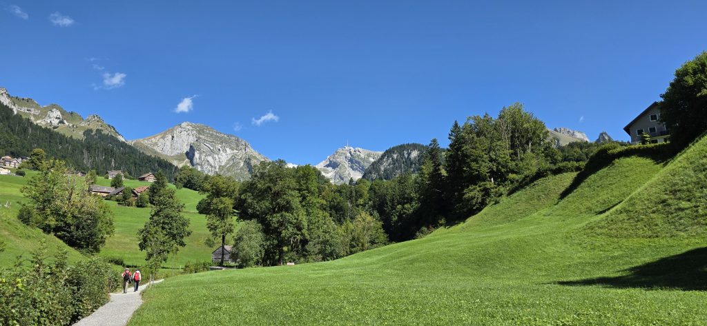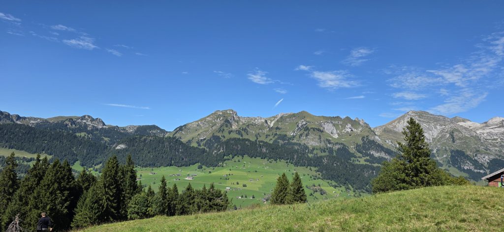 Aber wie das Leben so spielt, für diesen kurzen Spaziergang sind wir fast zwei Stunden gefahren. Also wollten wir den Tag noch etwas ausdehnen und sind mit der Standseilbahn zum Iltios hochgefahren. Für Taiga war das die erste Fahrt mit so einer Bahn und sie hat es ganz souverän gemeistert. Die Fahrt war zwar nicht ganz günstig, aber wir wollten oben etwas trinken und vielleicht sogar essen.