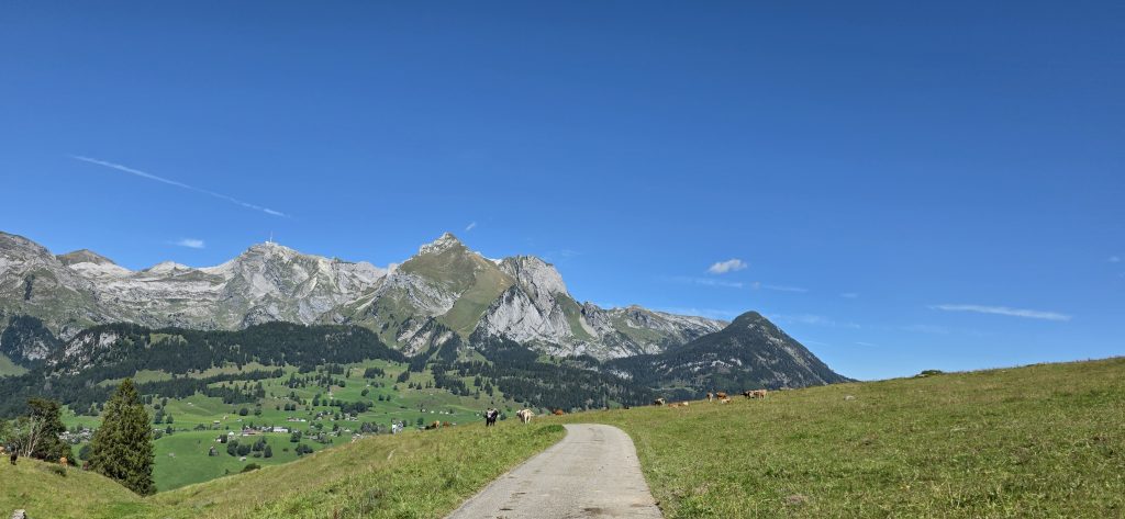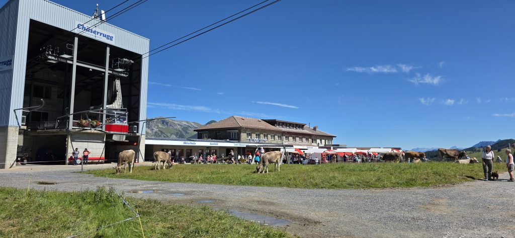 Tja… oben angekommen, war die Idylle dahin. Menschenmassen, Lärm, Kühe und kein Platz im Restaurant. Also haben wir beschlossen, einfach wieder runterzulaufen.