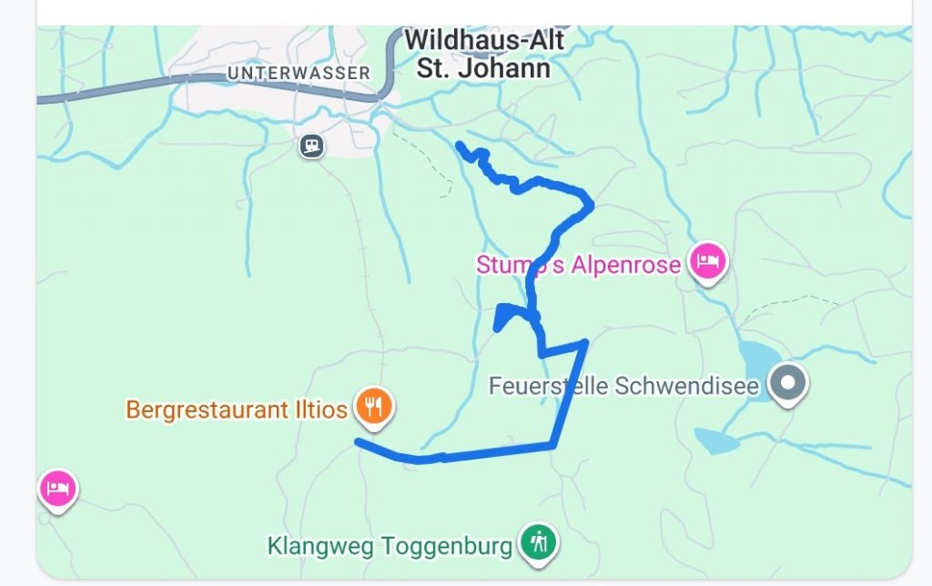 Ab da ging es weiter bergab und plötzlich schoss ein stechender Schmerz in mein linkes Knie. Ich konnte kaum noch gehen. Jeder Schritt war eine Qual, Tränen standen mir in den Augen. Ich hatte noch nie Knieschmerzen, aber das war die Hölle. Unten angekommen, ging es auf einer Strasse weiter Richtung Unterwasser. Einfach zu gehen, aber mein Bein wollte nicht mehr. Freddy lief allein zum Auto und holte mich ab. Ich war so dankbar.