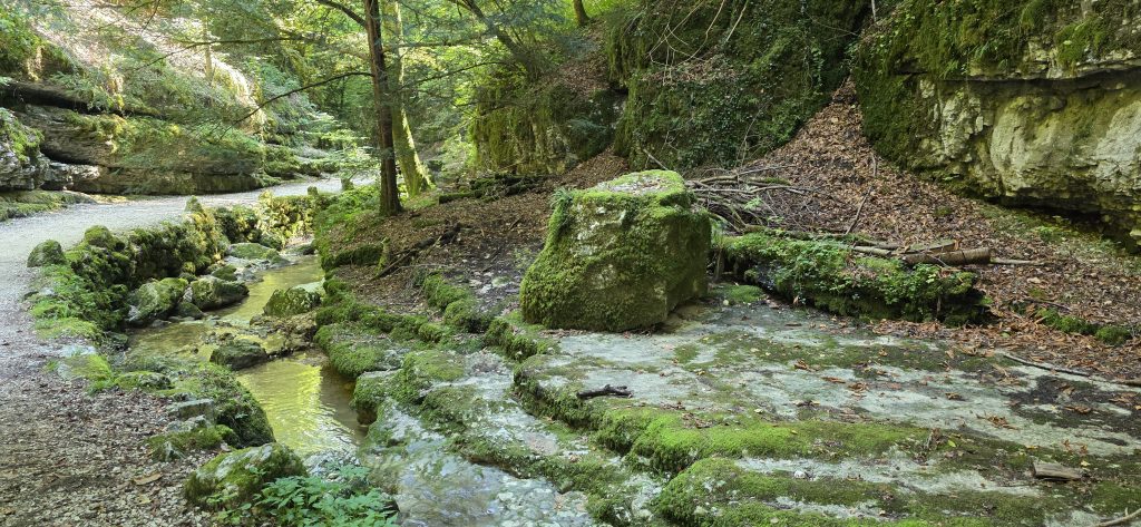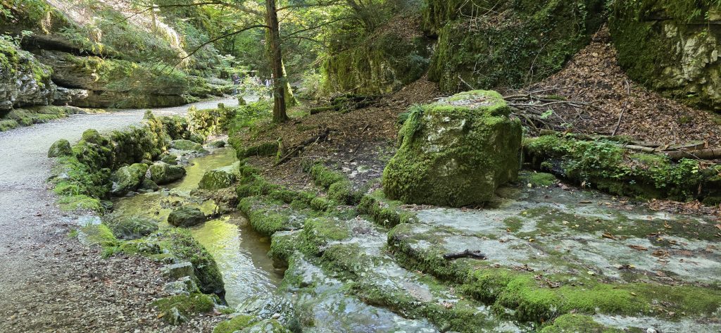 Der Spaziergang durch die Schlucht war einfach schön. Der Weg führt direkt am plätschernden Verena-Bach entlang, vorbei an moosigen Felsen, kleinen Höhlen und versteckten Ecken, die irgendwie geheimnisvoll wirken.