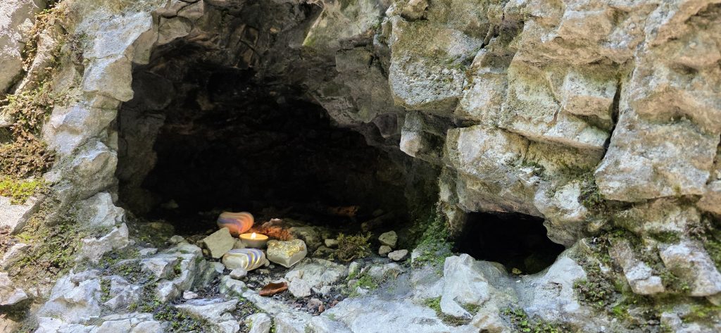In manchen Felsspalten stehen kleine Engel oder brennen Kerzen, als hätte jemand dort einen stillen Gruß hinterlassen. Man merkt: Dieser Ort bedeutet vielen Menschen etwas.