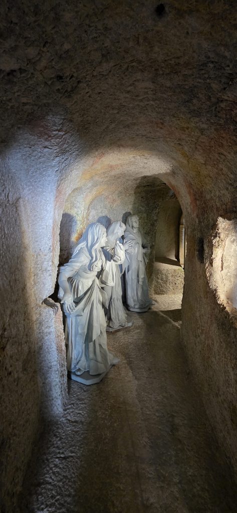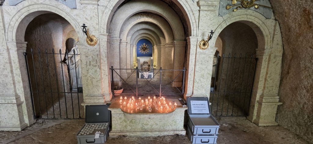 Wer hinter den Altar der Verena-Kapelle tritt, entdeckt eine eindrucksvolle Darstellung, die tief berührt: das Heilige Grab.